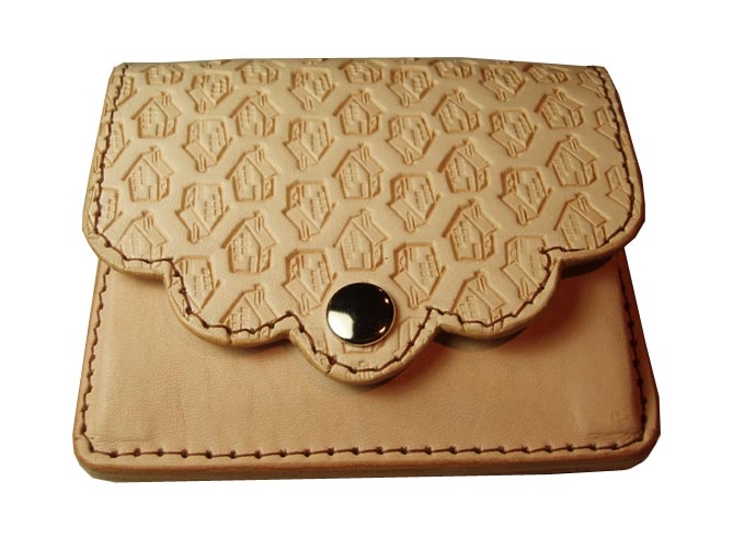 ■ 両面開きのコイン&カードケース。HOMEスタンピングがかわいらしい女性向き。